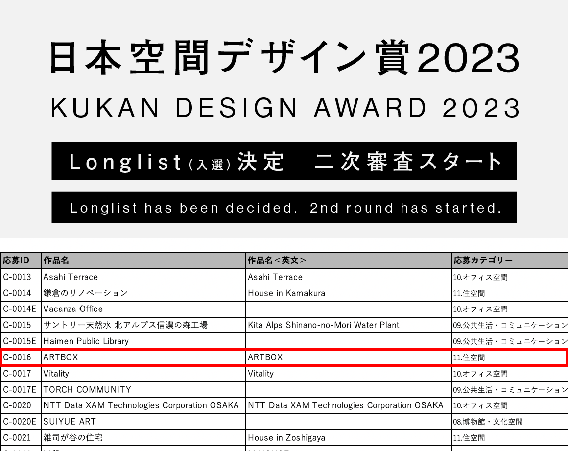 2023.06.20日本空間デザイン賞2023 Longlist入選